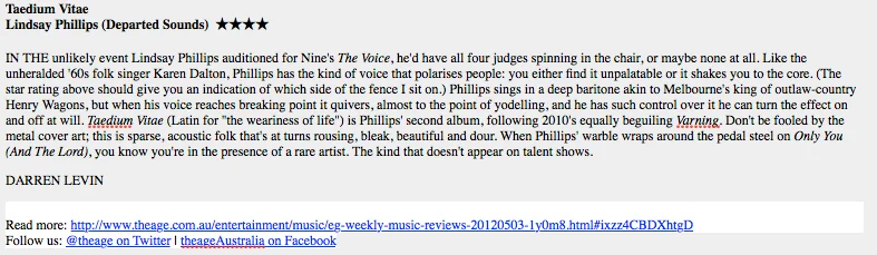 Reviews on my work with Fee Brown and the High Water