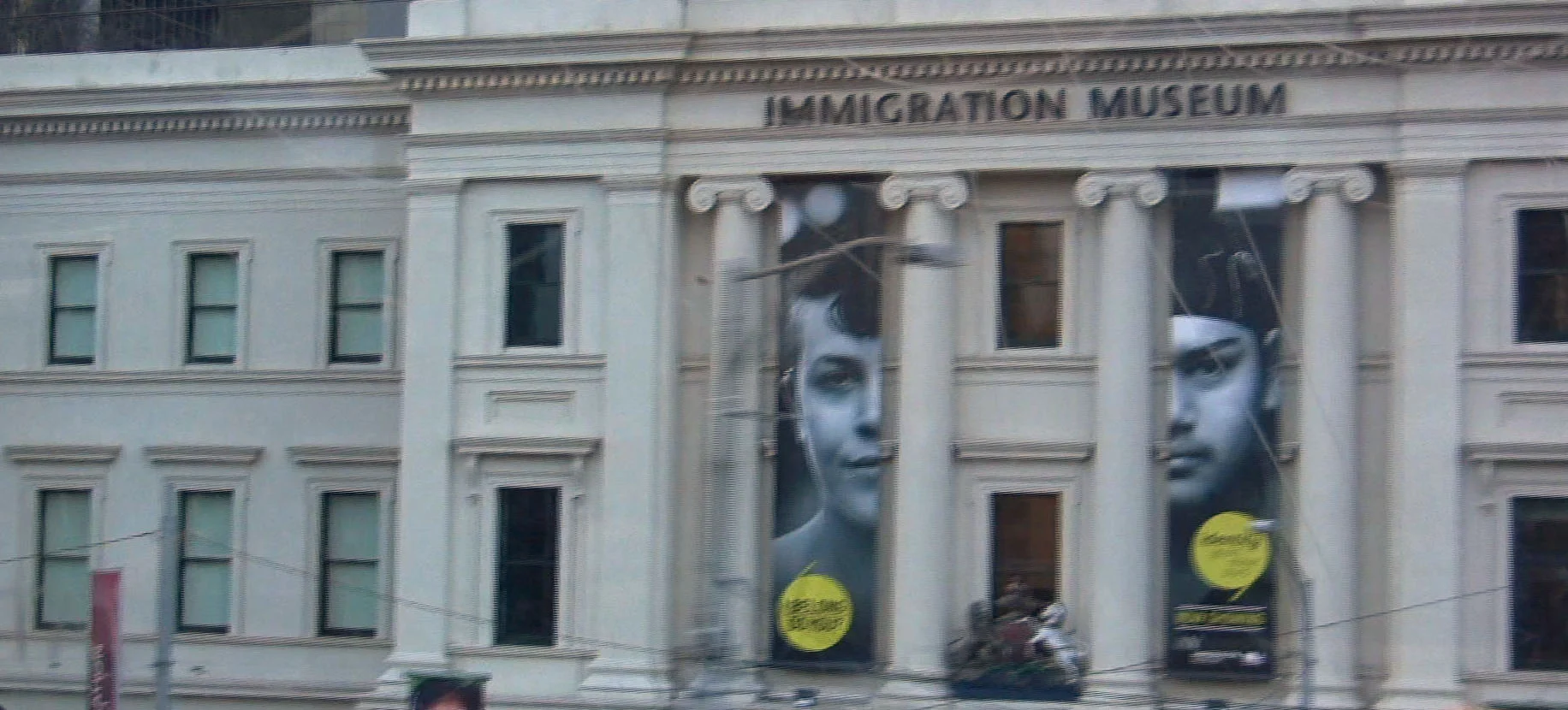 The installation includes six stationary monitors featuring interviews with thirty immigrants and refugees now living in Australia. These interviews, filmed in extreme close-up, are framed by a gallery space filled with large-scale projections of movement and displacement. Visitors are encouraged to move from screen to screen, engaging with fragments of stories and with their own memories and reflections on location, displacement and transition.
