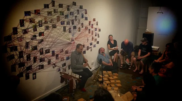 Adam Simmons' project mapping a Melbourne network of musicians performed as 100 duets over 25 nights throughout November of 2015.