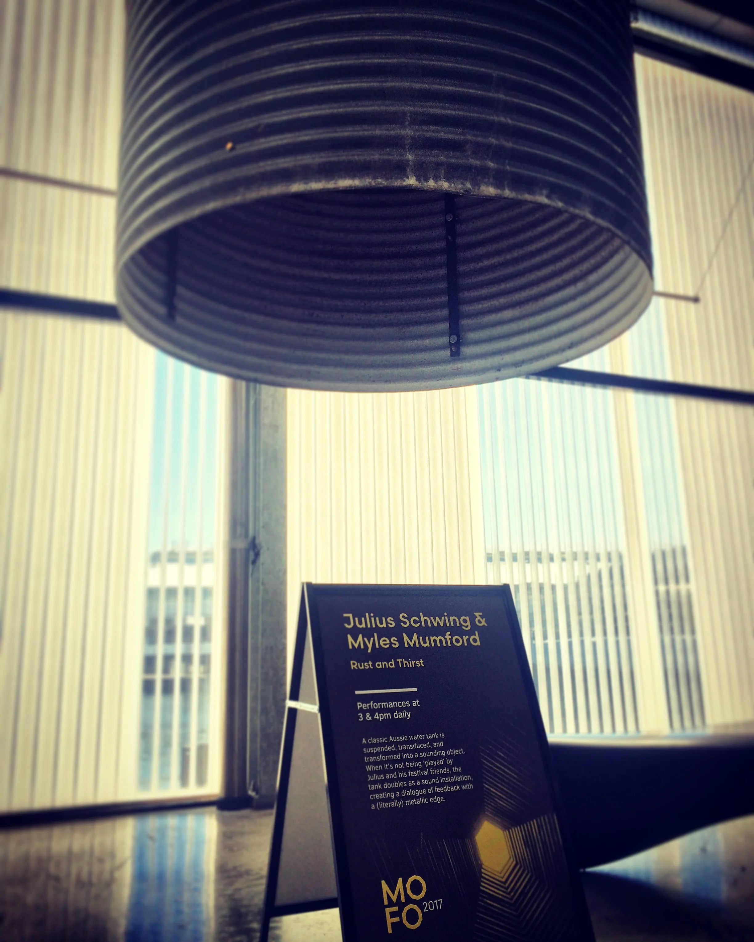 A classic Aussie water tank is suspended, transduced, and transformed into a sounding object. it is energised by transducers and it's vibrations recycled through contact microphones. The tank is the sounding body and we explore it's practical and symbolic place in Australia the driest inhabited continent.